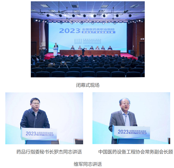 11月20日,由全国药品职业教育教学指导委员会指导,中国医药设备工程协会主办,江苏食品药品职业技术学院承办的2023年全国医药类职业院校药品生产技能大赛在江苏省淮安市顺利闭幕。药品行指委秘书长罗杰同志、中国医药设备工程协会常务副会长顾维军出席闭幕式并讲话。