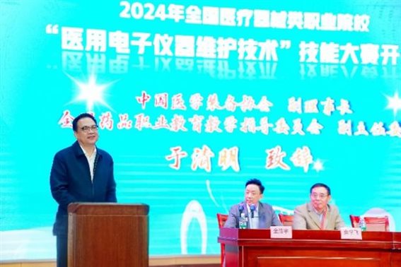 2024年12月7日至8日,由全国药品职业教育教学指导委员会(以下简称药品行指委)指导,中国医学装备协会主办,广东食品药品职业学院承办的2024年全国医疗器械类职业院校“医用电子仪器维护技术”技能大赛在广东食品药品职业学院顺利举办。药品行指委秘书长罗杰同志,中国医学装备协会副理事长于清明同志出席开幕式并讲话。来自全国各地30所医疗器械相关职业院校的163名师生参赛。