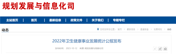 10月12日,国家卫生健康委发布《2022年我国卫生健康事业发展统计公报》。根据《公报》,2022年,全国医疗卫生机构总诊疗人次84.2亿,与上年基本持平。全国中医类医疗卫生机构总数80319个,比上年增加2983个,总诊疗人次12.3亿,比上年增加0.2亿人次。《公报》显示,我国政府投入不断增加,医疗卫生资源提质扩容,卫生服务体系不断健全,健康中国建设稳步推进。