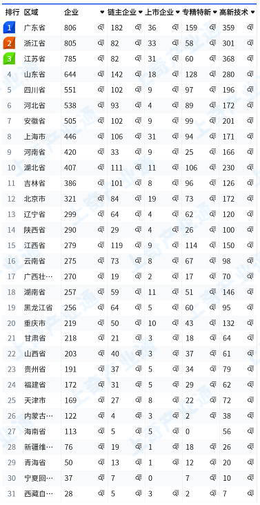 根据上奇产业通,生物医药产业由原材料、药品制造、医学研发服务、药品流通服务4个一级环节构成,包含13个二级环节、43个三级环节和23个四级环节。 截止到2023年3月,全国布局企业10139家,主要分布在广东省、浙江省和江苏省,分别有806家、805家和785家。 全量企业中,上市企业279家,专精特新企业1706家,高新技术企业3511家,分别占全量企业的2.8%、16.8%、34.6%。 从上市企业数量来看,广东省、浙江省、上海市、江苏省生物医药产业上市企业数量位居前三,分别有36家、33家、31家、31家。从专精特新企业数量来看,广东省、山东省、江西省生物医药产业专精特新企业数量位居前三,分别有159家、128家、114家。从高新技术企业数量来看,江苏省、广东省、浙江省生物医药产业高新技术企业数量位居前三,分别有368家、359家、301家。 截止到2023年3月,全国生物医药产业授权专利总量共5491件,其中授权发明专利1501件,占比27.34%,授权实用新型专利3962件,占比72.15%,授权外观设计专利28件,占比0.51%。 全国省级及以上生物医药研发机构3515个,其中企业技术中心数量最多,共1802个,其次为工程研究中心,有752个。 2022年4月到2023年3月,生物医药产业发生融资事件526起,融资金额高达961亿元,融资轮次集中在A轮。
