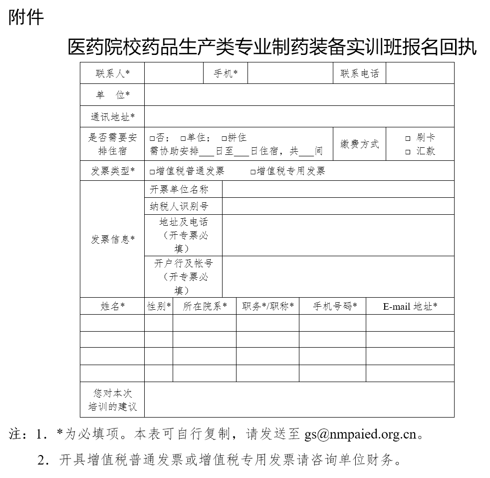 药品行指委秘书处拟于4月下旬在浙江温州举办医药院校药品生产类专业制药装备实训班。现将有关事项通知如下: