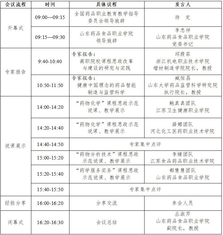 药品类课程思政集体备课会日程安排